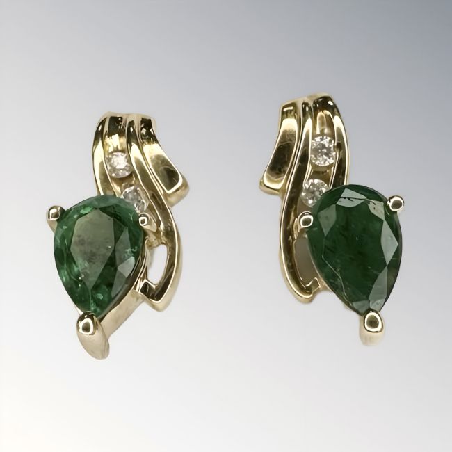 A pair of 10ct gold emerald and diamond earrings, with post fittings, length 13mm