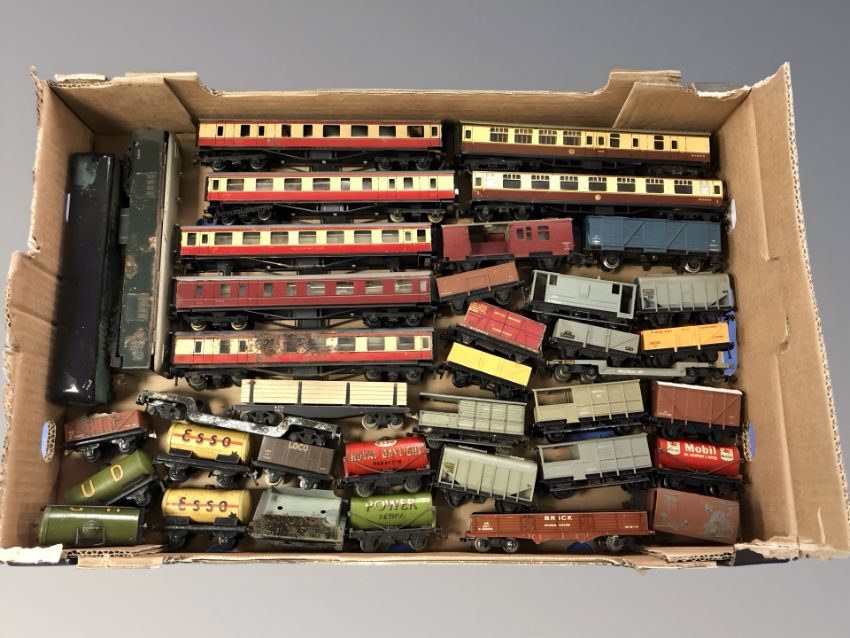 A group of tin plate and plastic rolling stock including Wrenn, Hornby etc (1 box)