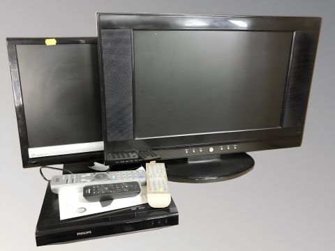 A JVC tv, further tv, dvd player and remotes