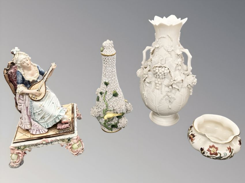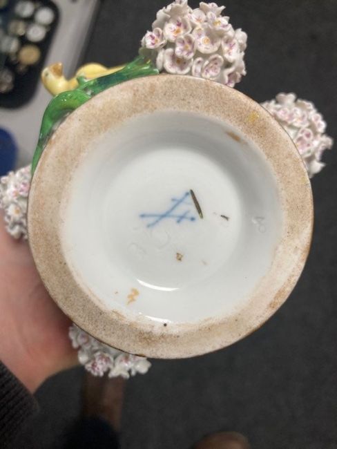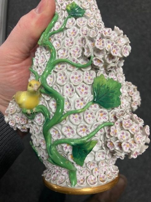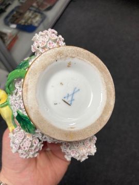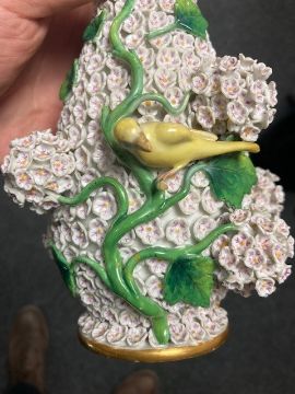 The Meissen style vase has some imperfections and small losses although structurally look ok. Images posted online should help further.
