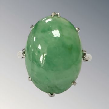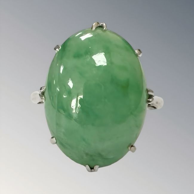An antique 18ct gold jade ring, size N