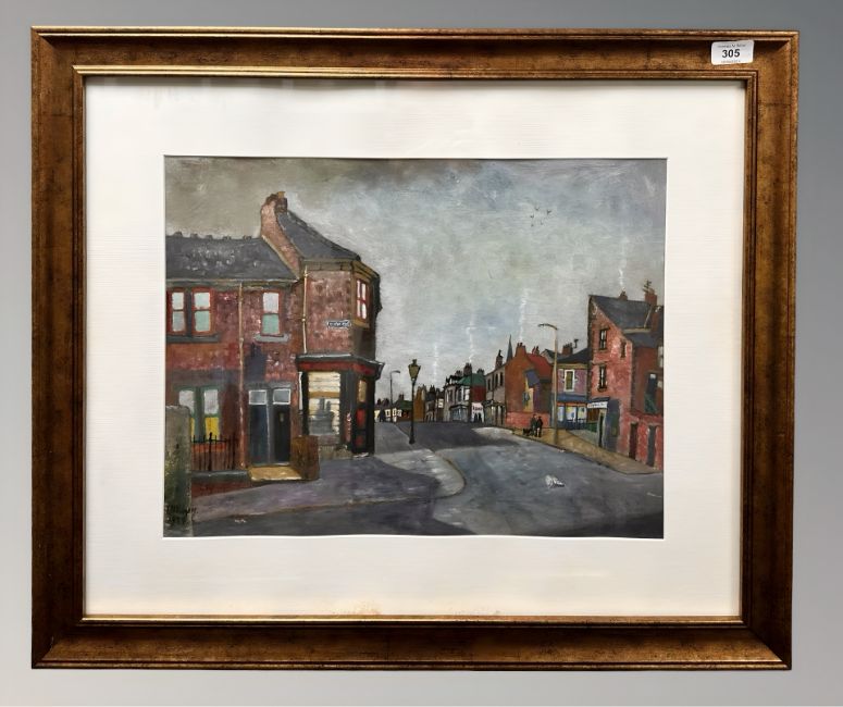 Charles Herbert "Charlie" Rogers (1930-2020) : Alston Street, Gateshead, oil on paper, signed and dated 1974, 35 cm x 47 cm, framed.