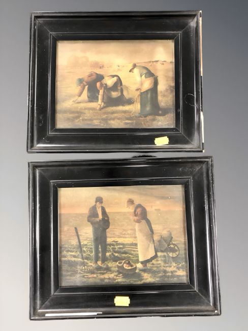 Two antiquarian prints after Jean Francois MIllet, each 17 cm x 21 cm, in ebonised fames