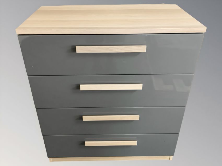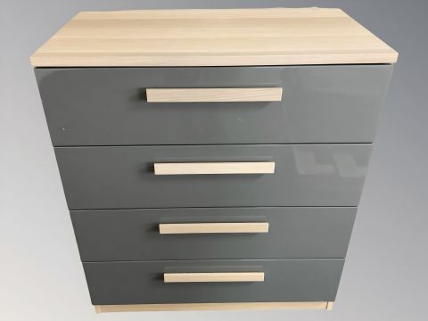 A modern grey laminated four drawer chest, 81 cm wide x 44 cm deep x 91 cm high