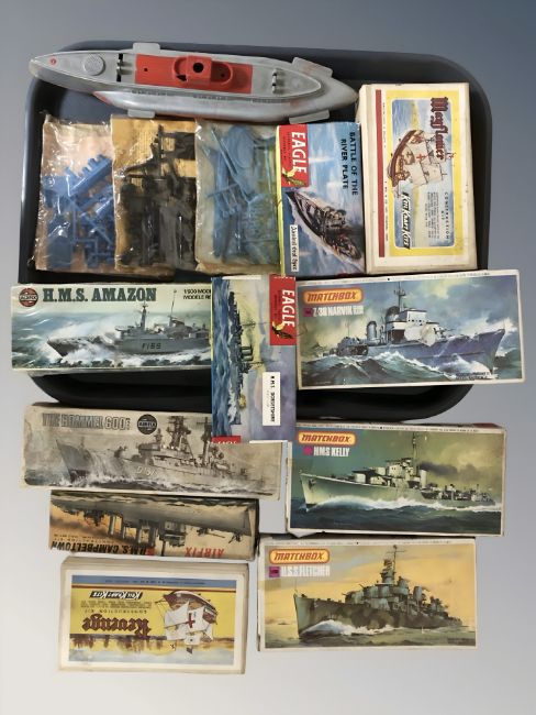 A group of Airfix, Matchbox and other scale naval modelling kits