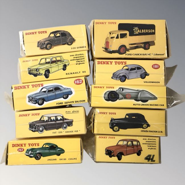 A group of Atlas Editions Dinky die cast cars, all sealed in cellophane