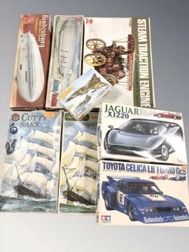Assorted naval and car scale modelling kits including Airfix, Tamyir etc