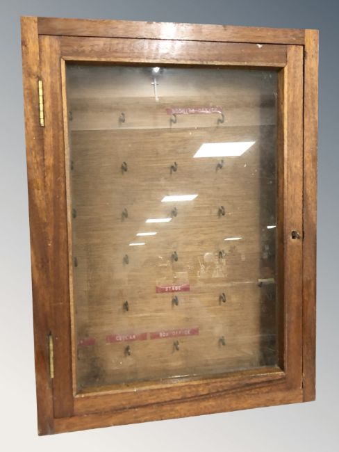 A teak key cabinet, with key, 61 cm x 45 cm.