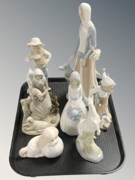 A group of Spanish porcelain figures and groups, tallest 37 cm.