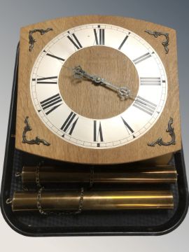 A Junghans oak wall clock with silvered dial, brass weights and pendulum.