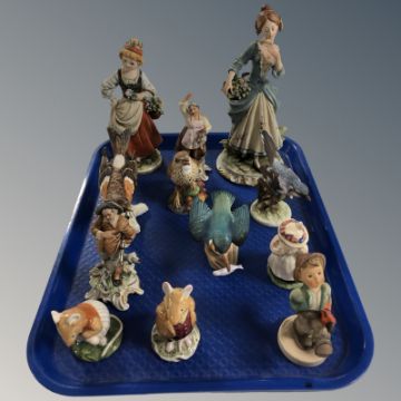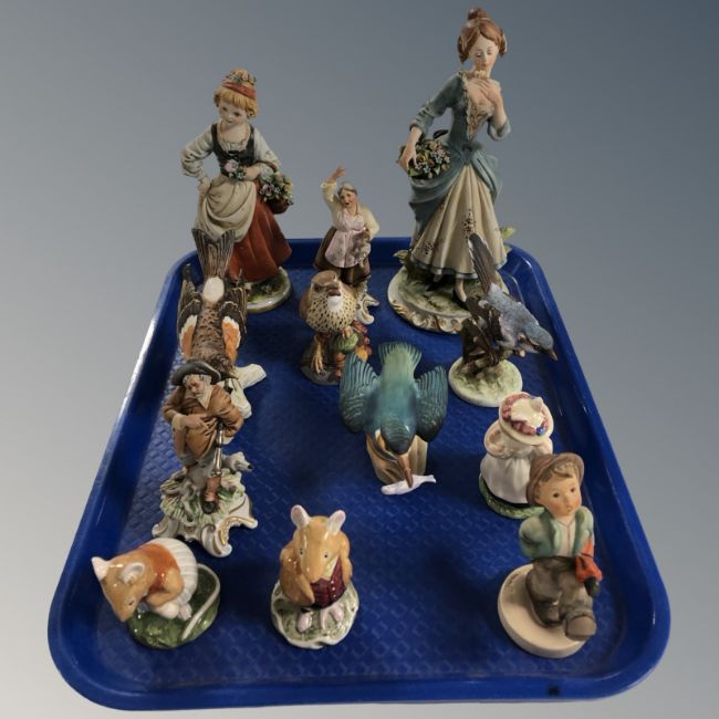A group of Capodimonte bisque figures, Goebel and Royal Worcester figures of birds, Royal Doulton brambly hedge figures, etc.