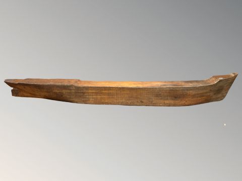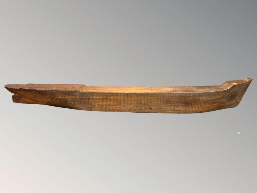 A very large early 20th century shipwright's flat backed scale model of a boat hull, length 293 cm.
