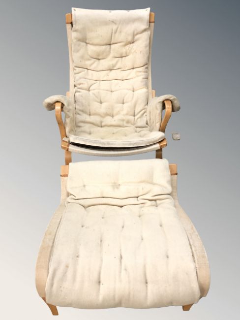 A Scandinavian bentwood lounge chair and matching stool
