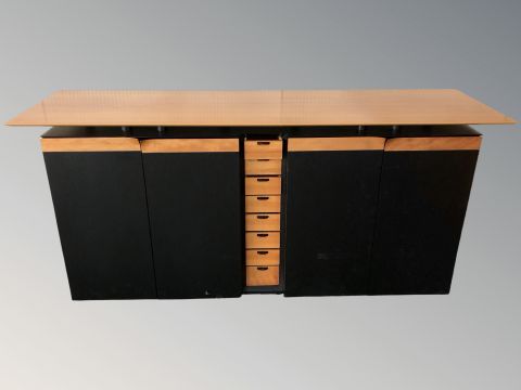 A Scandinavian high gloss ebonised sideboard, 200 cm x 54 cm x 93 cm