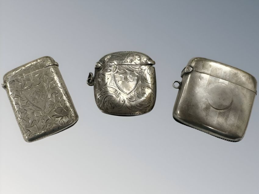 Three antique silver vesta cases, largest 5 cm long.
