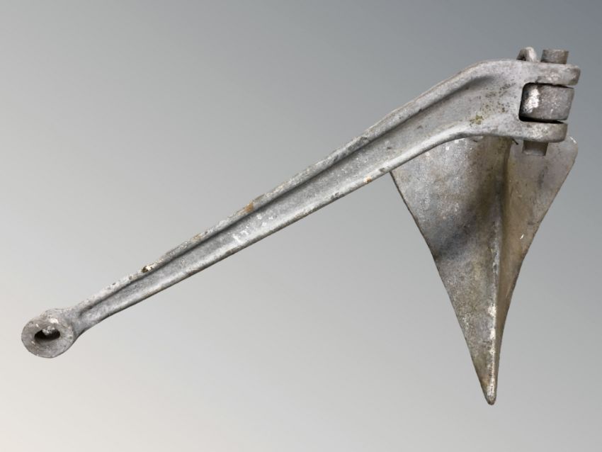 A galvanised anchor, length 74 cm.