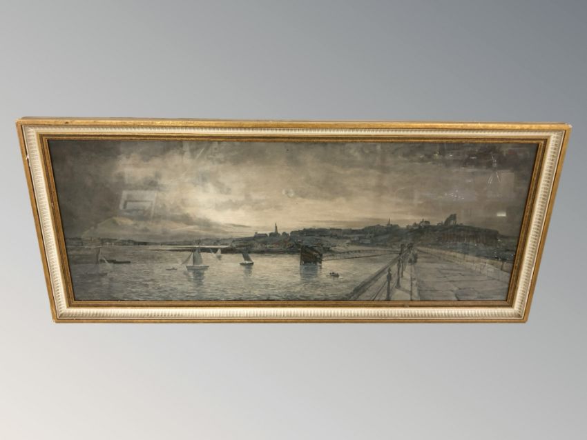 After John Falconar Slater (1857-1937) Tynemouth 1899/1901, over-painted print, 31cm by 81cm