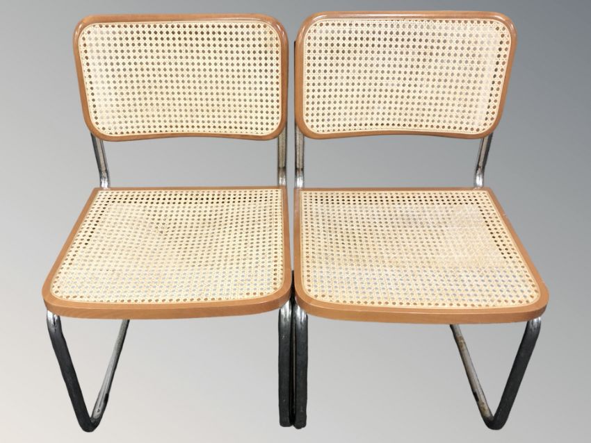 A pair of chrome cantilever chairs.