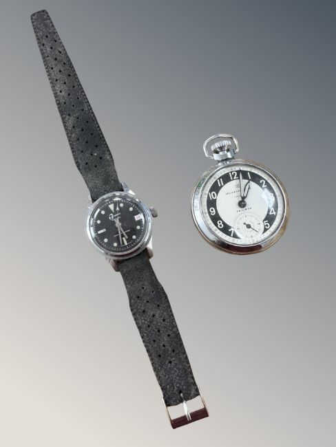 A stainless steel Burgana calendar wristwatch and an Ingersoll Triumph pocket watch