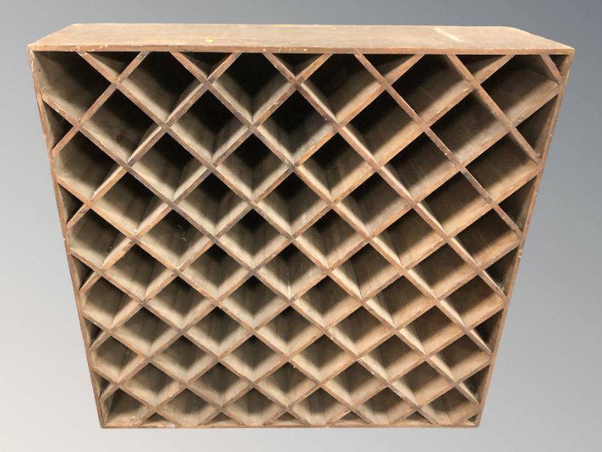 An early 20th century bottle rack/shelf, 107 cm x 31 cm x 105 cm