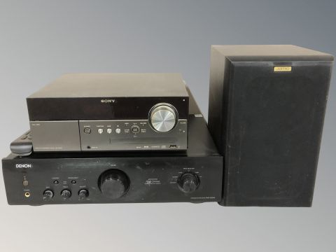 A Denon integrated amplifier PMA-520AE, a Sony micro hi-fi system CMT-MX550i, with remote, and a Jamo speaker. (continental plugs)