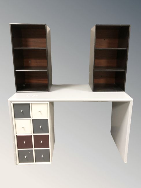 A painted table fitted drawers and shelf beneath, 120 cm x 60 cm x 73 cm