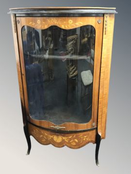 A French kingwood veneered bow-front corner display cabinet, height 131 cm