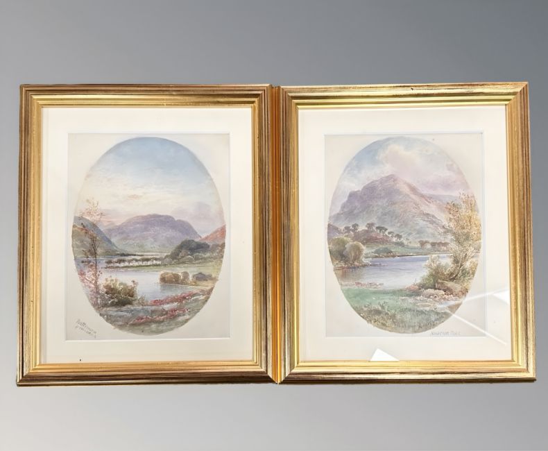 Malcolm Crosse (British, 19th/20th century) Buttermere and Melbreck, watercolour, 21 cm x 16 cm, together with a further scene by the same hand 'Honister Cragg', framed as a pair.