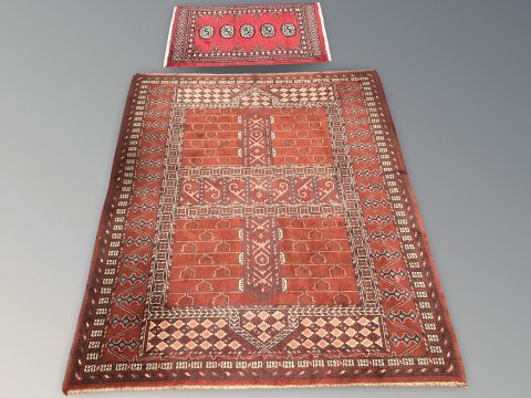 A machine-made rug of Turkoman Ensari design, 170cm by 144cm, together with a further rug. (2)