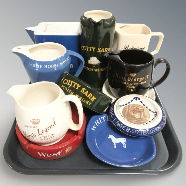 A group of advertising wares, whisky jugs etc
