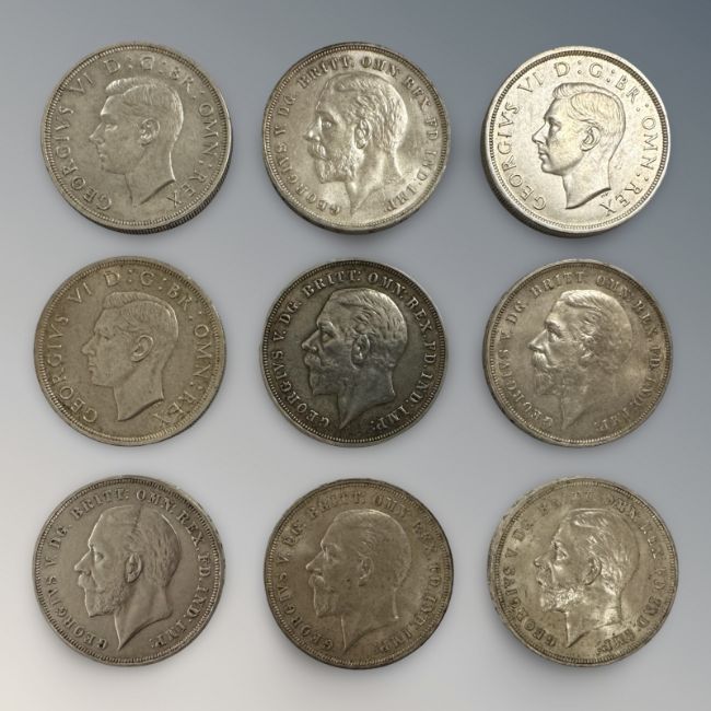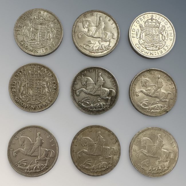 Nine 1935 and 1937 crowns, all NEF