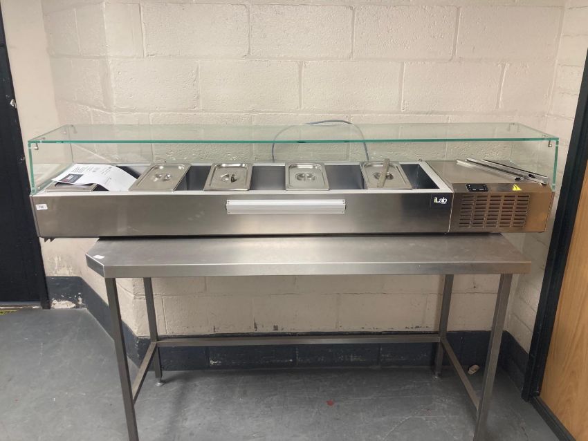 A Moretti Forni iLab stainless steel salad bar / pizza preparation desk chiller / counter, width 197 cm.