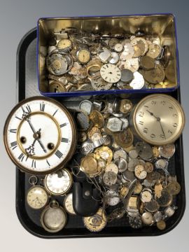 A large group of wristwatch movements, pocket watch movements and clock related parts.