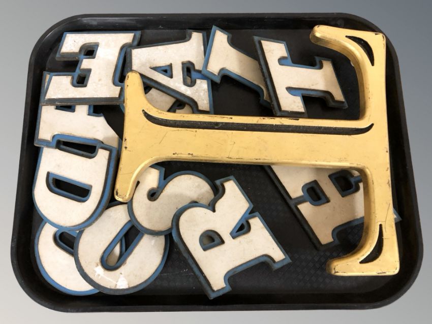 A group of 20th century plastic advertising letters including a large letter T.