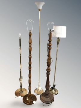 A group of standard lamps, examples in onyx, wood and brass.