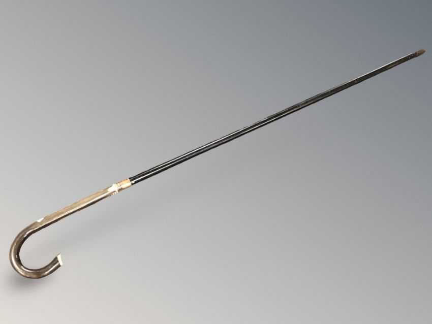 An ebonised walking stick with polished horn handle, length 103 cm.