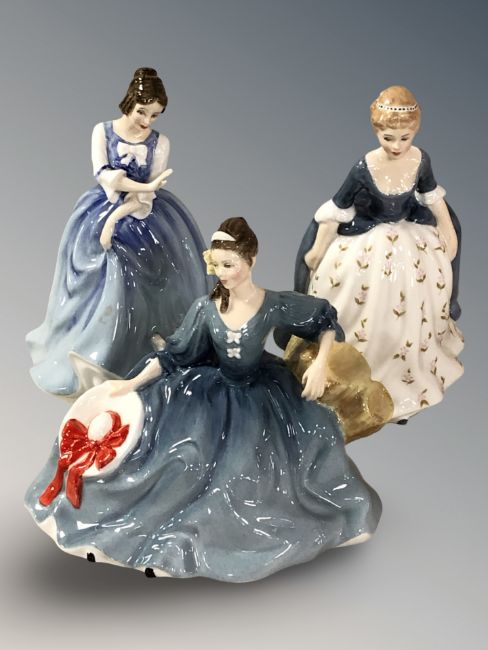Three Royal Doulton figures 'Elyse' HN2429, 'Lorraine' HN3118 and 'Alison' HN2336.