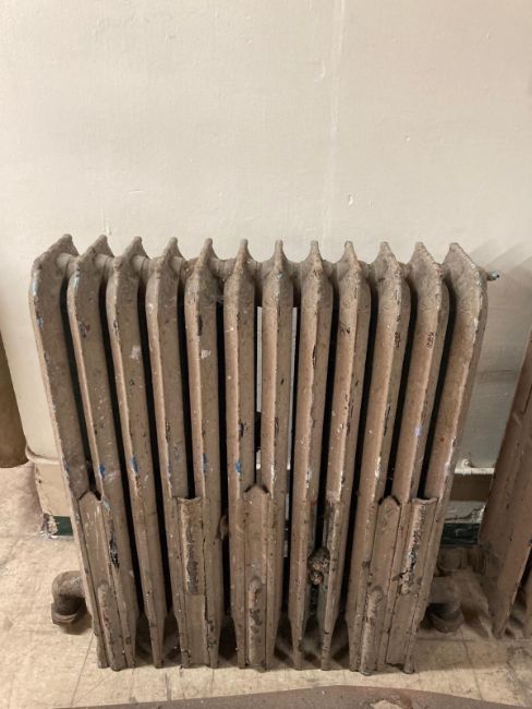 An early 20th century cast iron radiator height 97 cm x depth 23 cm x width 79 cm *Provenance - Preston Park Museum and Stockton-on-Tees Borough Council