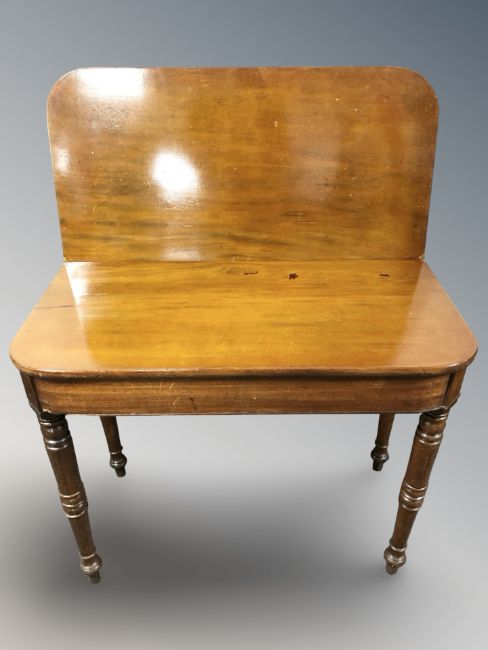 A Victorian mahogany turnover top tea table, width 91 cm.