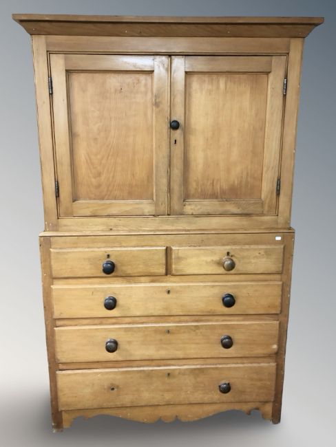 A Victorian pine press, 118 cm x 62 cm x 193 cm.