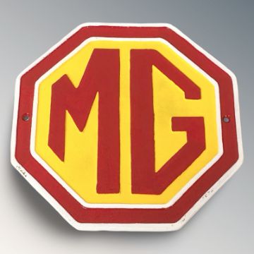 A cast iron MG plaque, diameter 24 cm.