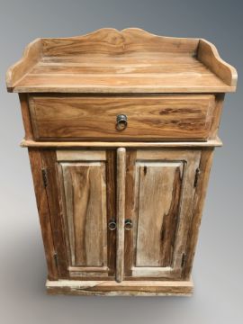 A mango wood side cabinet, 67 cm W x 46 cm D x 103 cm H.