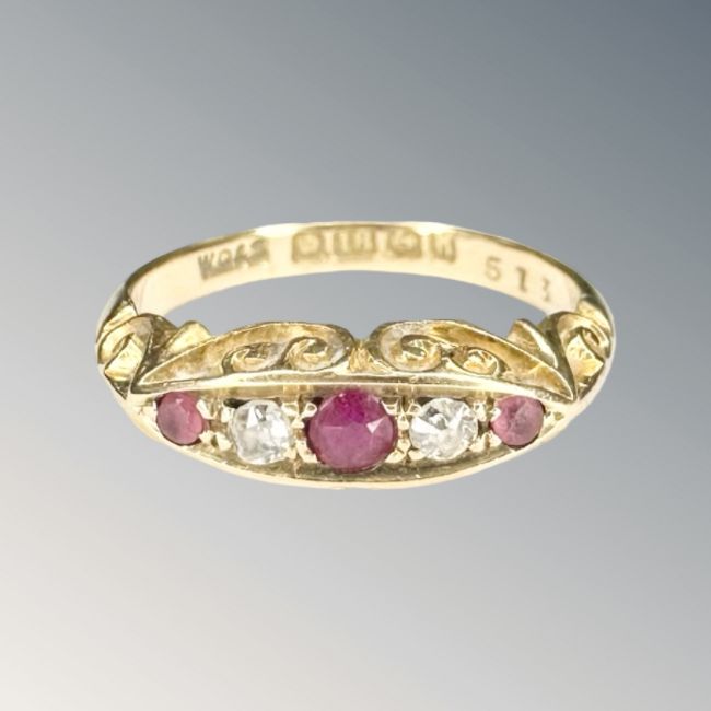 An 18ct gold ruby and diamond ring, size K