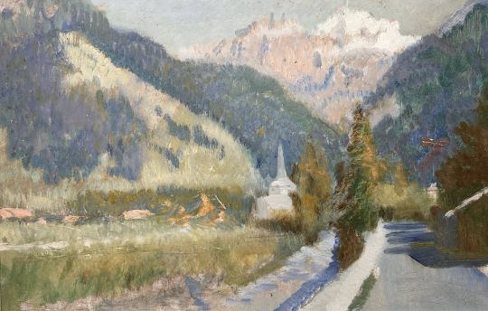 20th Century School : Impressionist continental landscape, oil on board, 37 cm x 57 cm.