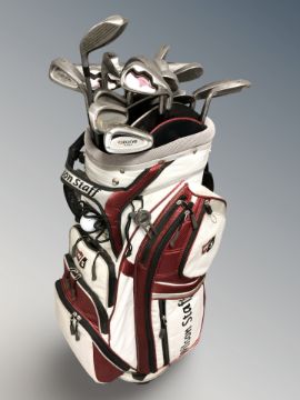 A Wilson golf bag containing assorted irons and drivers including Calloway, Ozone etc