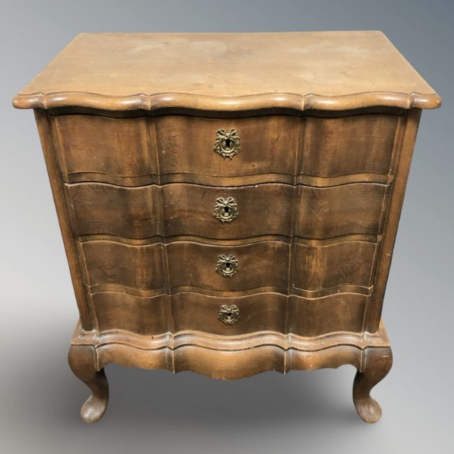 A continental oak serpentine-front four drawer chest, 64 cm x 37 cm x 76 cm