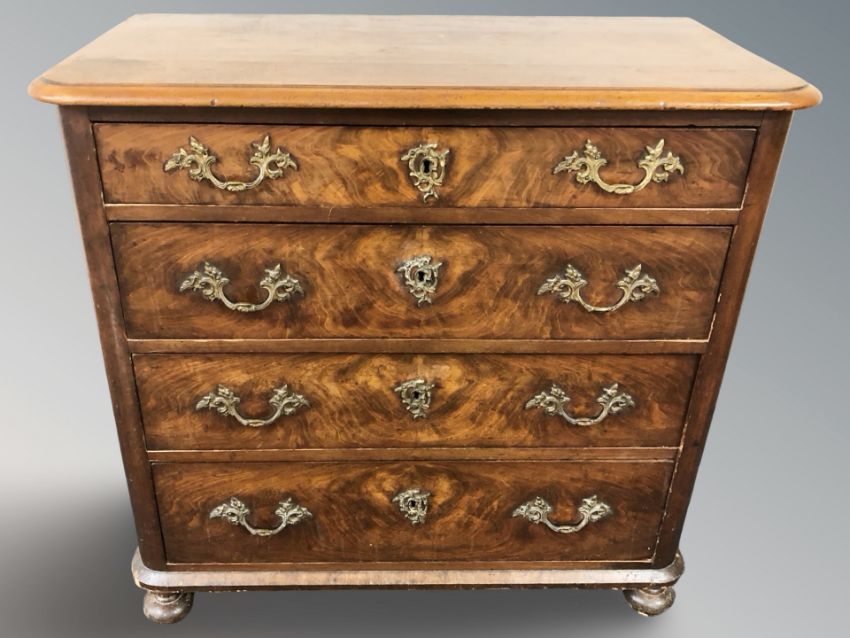A 19th century continental walnut four drawer chest, 93 cm x 47 cm x 91 cm