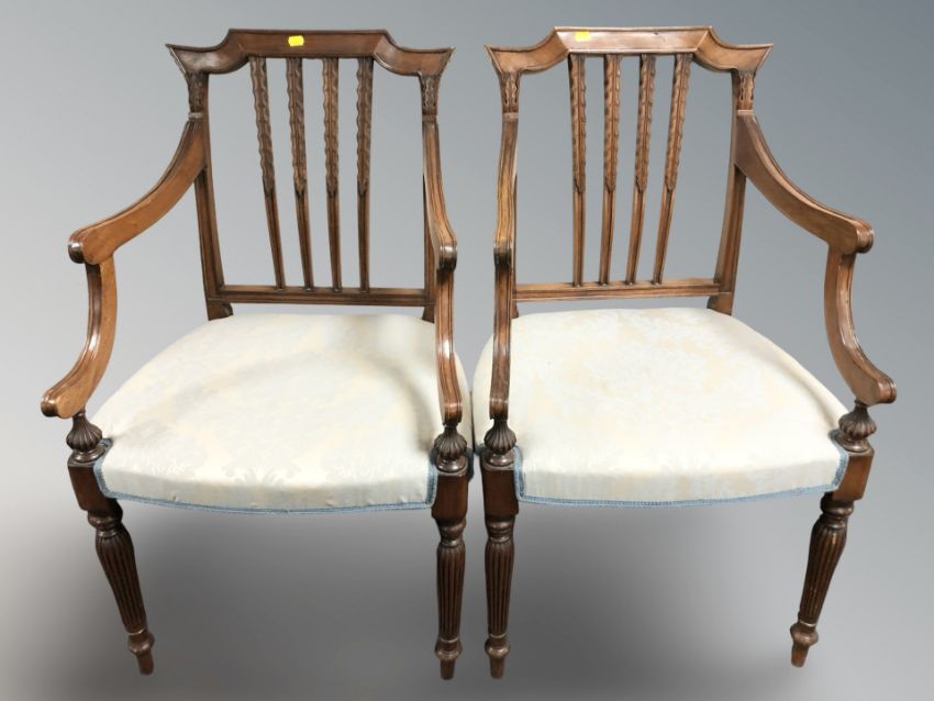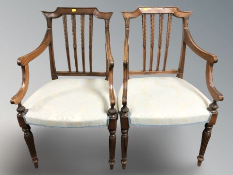 A pair of reproduction mahogany carver armchairs.
