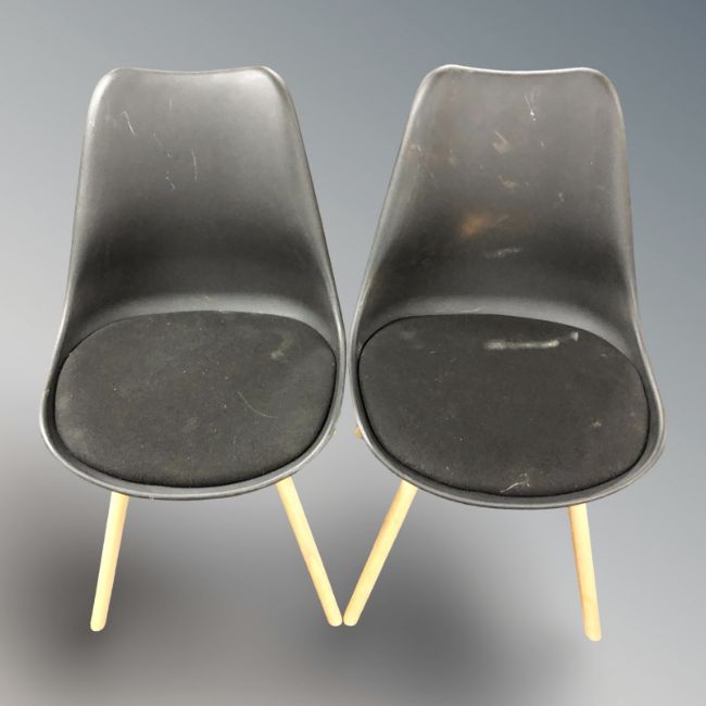 A set of six contemporary Scandinavian oak and moulded plastic chairs.