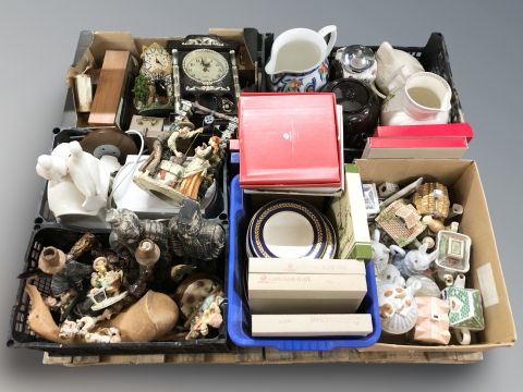 A large quantity of 20th century ceramics, Hornsea Christmas plates, figures, mantel time piece, collector's teapots etc (one pallet)